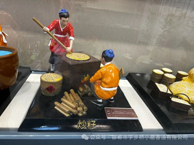 第三步,炒籽。這一步直接影響香油的香氣。漂洗后的芝麻,以鐵鍋碳火慢炒至香味溢出。經(jīng)驗豐富的炒制師傅們憑借著多年積累的手感和眼力,精準把控火候與時間。在恰到好處的溫度下,芝麻逐漸散發(fā)出誘人的焦香,為后續(xù)的工序做好準備。