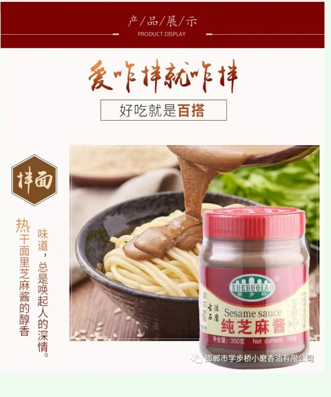 吃整個(gè)的芝麻,營養(yǎng)全在里面,而把芝麻制成醬,營養(yǎng)全部釋放出來了。不僅豐富了膳食的風(fēng)味,還提高了飲食的營養(yǎng)價(jià)值,尤其適合中老年人。