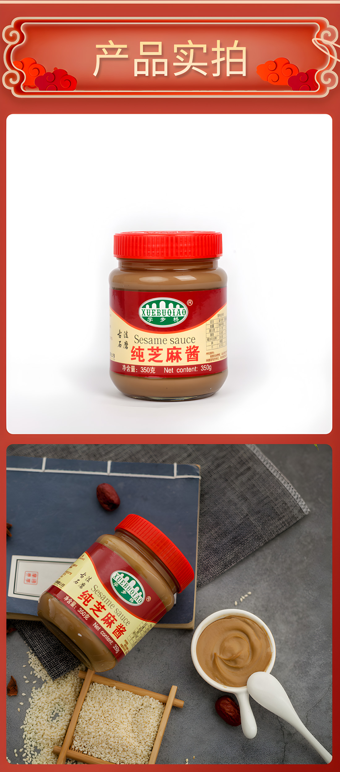 學(xué)步橋純芝麻醬為優(yōu)質(zhì)國(guó)產(chǎn)芝麻研磨,色澤為黃褐色,質(zhì)地細(xì)膩,味美,具有芝麻特有的濃郁香氣,純芝麻醬富含豐富的蛋白質(zhì)、氨基酸及多種維生素和礦物質(zhì),其中含鈣量較高。學(xué)步橋純芝麻醬遇鹽變咸,遇糖變甜,單吃很香,不僅豐富了膳食的風(fēng)味,也提高了膳食的營(yíng)養(yǎng)價(jià)值。麻醬涼面,面香而不膩;火鍋蘸料,口感細(xì)膩;麻醬拌菜,香醇爽滑;一勺芝麻醬,無(wú)須烹飪做出美味佳肴。精致瓶裝,白領(lǐng)、做飯頻率少的家庭更適用。