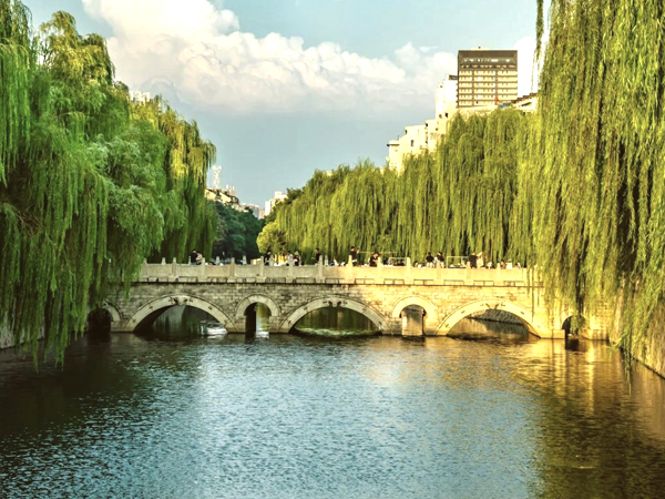 每逢朝輝臨古橋, 心隨秋云萬里飄。 天下英雄多少事, 熙熙攘攘邯鄲道。