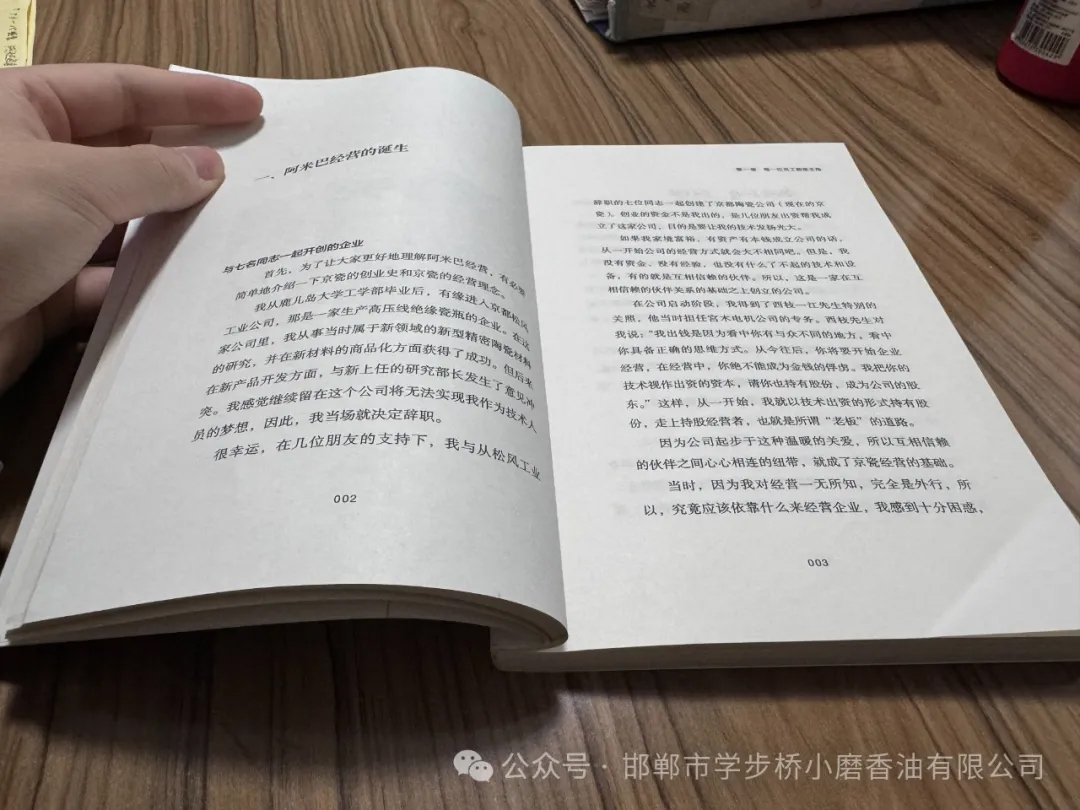 今日,在學步橋小磨香油有限公司,一場關于稻盛和夫阿米巴經(jīng)營理念的學習,如春風化雨,潤澤心間。尤其是 “領導人應該成為公正的裁判” 以及 “不撒謊、不騙人、要正直” 這兩章內(nèi)容,讓我們受益匪淺。
