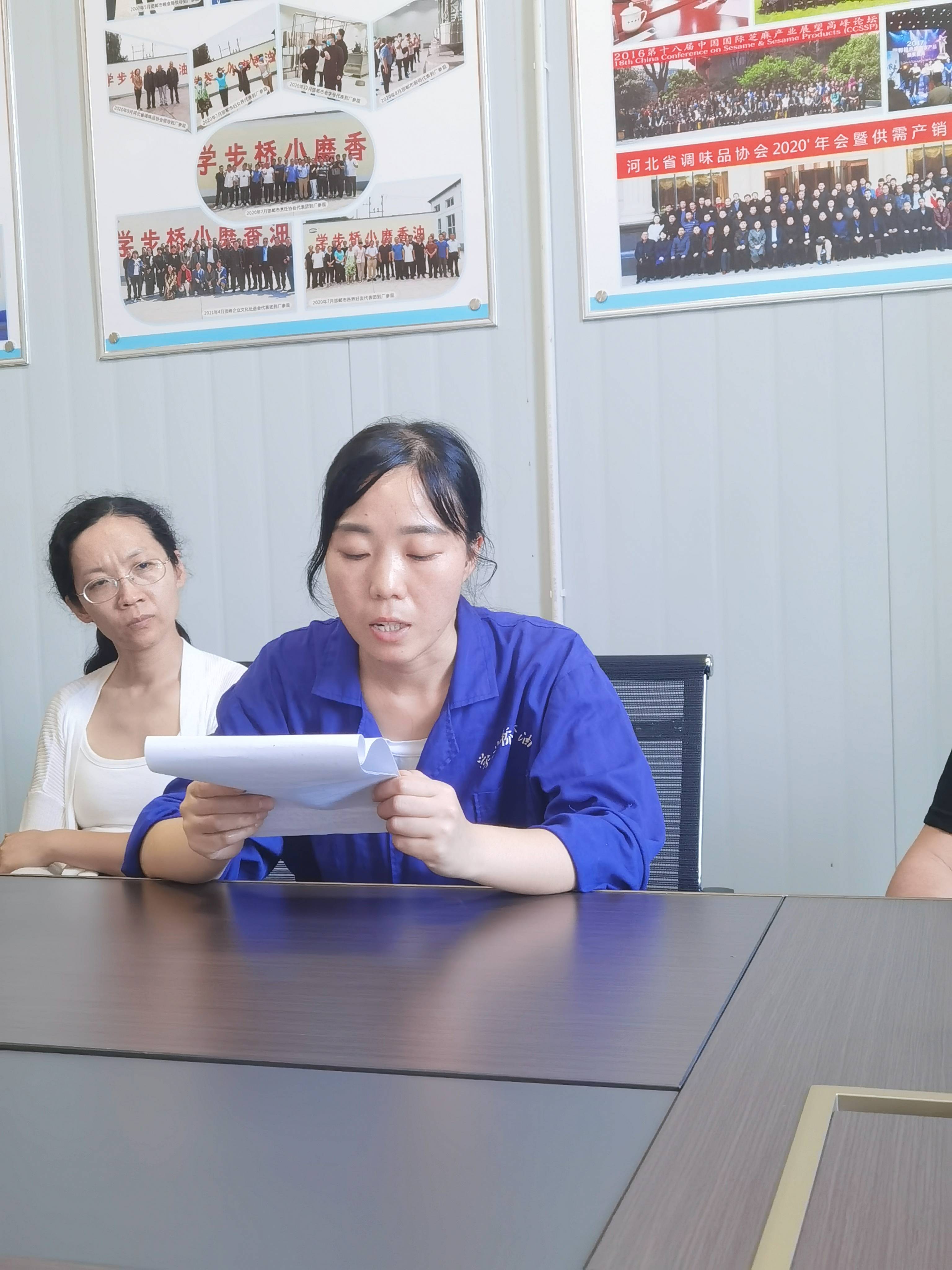 公司技能考核專家對(duì)王小英的論文進(jìn)行提問,現(xiàn)場答辯。