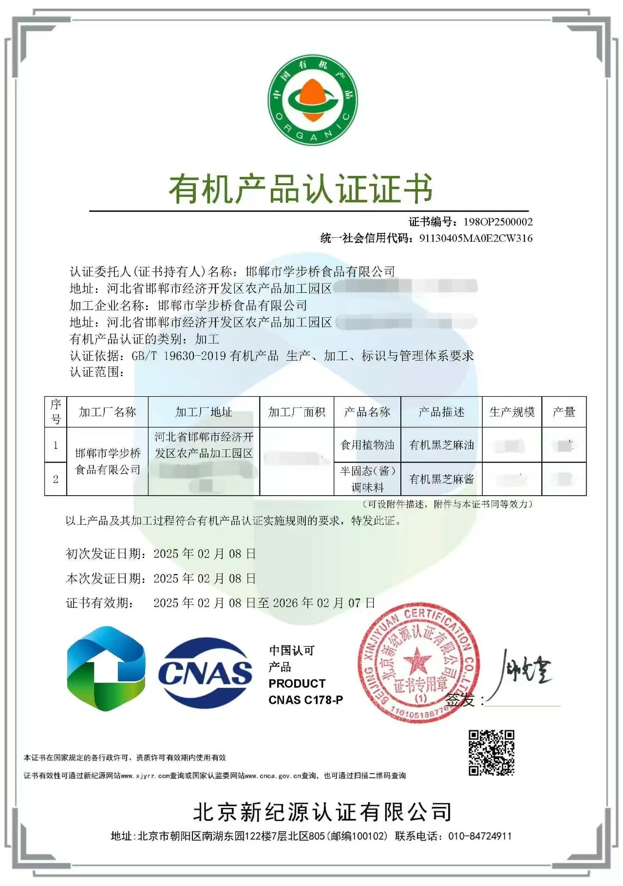 邯鄲市學步橋食品有限公司獲有機、富硒產品權威認證