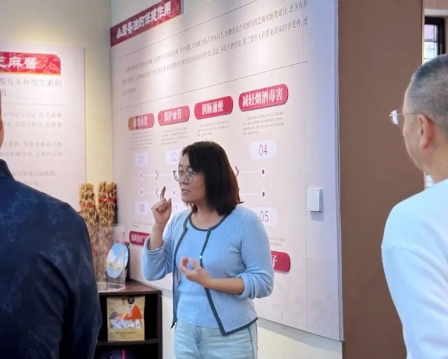 在營養(yǎng)科普環(huán)節(jié),邯鄲職業(yè)技術(shù)學院營養(yǎng)專家武玉濤老師,用通俗的語言拆解了小磨香油和芝麻醬的保健功效——“香油中富含的不飽和脂肪酸,被譽為‘血管清道夫’,經(jīng)常食用可以很好的保護心血管;芝麻醬號稱‘鈣王’,每100克黑芝麻醬含鈣量達1247毫克,是牛奶的8倍!”現(xiàn)場不少參與者掏出手機拍下文化墻上的內(nèi)容,“以前只知道香油香,沒想到還有這么多健康門道!”一位阿姨的感慨道出了大家的心聲。