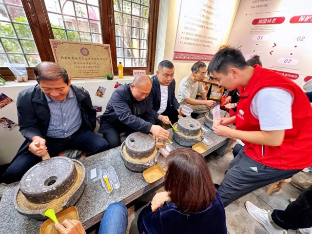 現(xiàn)場最熱鬧的當屬研磨體驗區(qū)!大家握住青石磨的把手緩緩轉(zhuǎn)動,看著芝麻漸漸變成金黃的芝麻碎,臉上滿是成就感。體驗后,劉建堂董事長還特地為體驗者頒發(fā)“非遺工藝體驗證書”,讓大家更加深了對小磨香油文化的認同。試吃區(qū)同樣人氣爆棚,黑芝麻醬水果吐司的香甜、黑芝麻醬咖啡的醇厚、黑芝麻干噎酸奶的綿密,每一款創(chuàng)意吃法都讓人眼前一亮。工作人員現(xiàn)場分享了《學步橋小磨香油芝麻醬美食食譜》,讓大家在品味美味的同時,也了解更多樣更營養(yǎng)的搭配吃法。