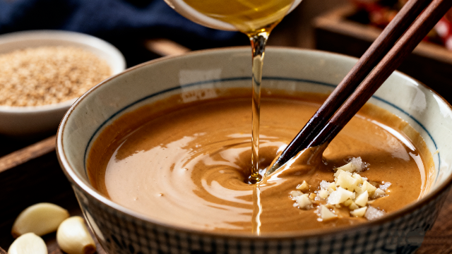 第二步:調(diào)配秘制麻醬汁,這是整道菜的靈魂所在!