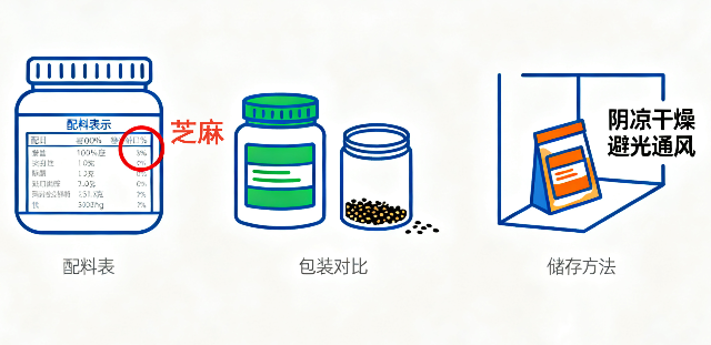 3.儲(chǔ)存技巧:陰涼、干燥、避光、通風(fēng)處保存,香油避免緊挨著灶臺(tái)或暖氣;芝麻醬每次取用時(shí)用干凈干燥勺子,避免沾水。