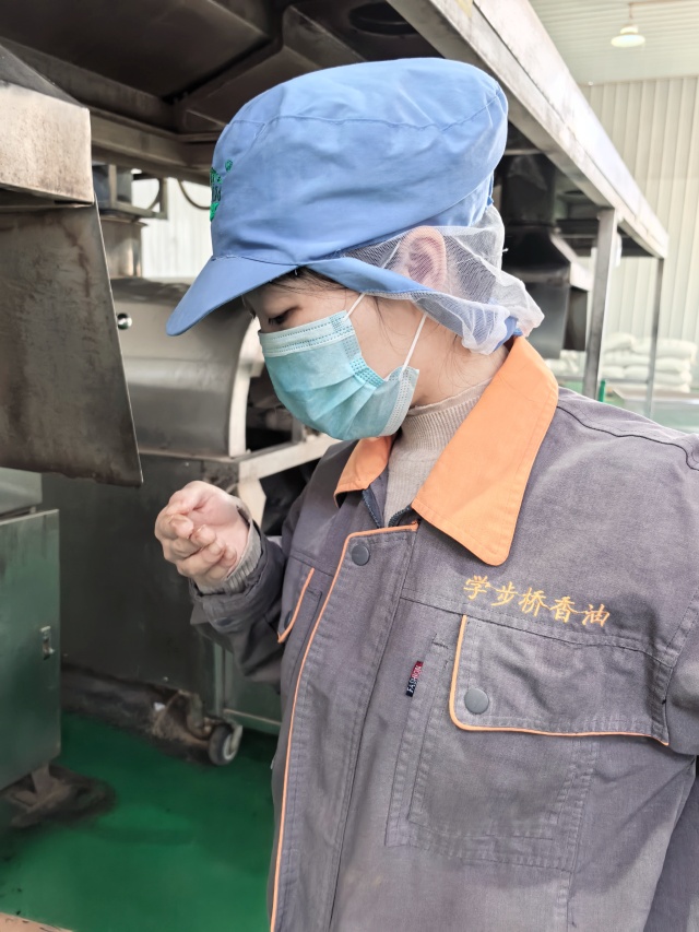 在學(xué)步橋小磨香油的生產(chǎn)車(chē)間里,“女技工”曾是一個(gè)空白的稱(chēng)謂。依托重體力作業(yè)、高溫環(huán)境的傳統(tǒng)“水代法”工藝,讓這里20年來(lái)始終是男技工的天下。直到2025年11月,王小英書(shū)寫(xiě)了一個(gè)傳奇——她順利通過(guò)技工考核,成為學(xué)步橋小磨香油發(fā)展史上的第一位女技工。從2019年入職,到如今成功通關(guān),5年時(shí)光里,她用信念挑戰(zhàn)極限,讓傳統(tǒng)技藝在女性手中綻放出新的光彩。