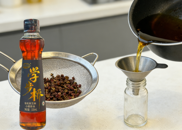 【原料準備】學步橋有機黑芝麻小磨香油100ml、花椒5顆