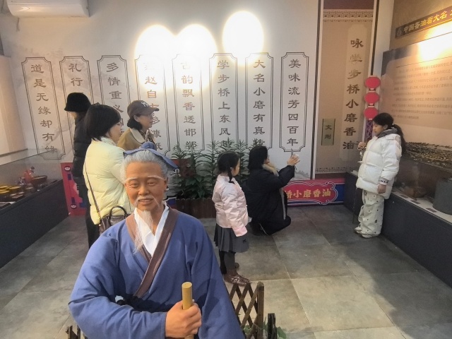 走進文化館,圖文并茂的文化展墻前總是圍滿認真閱讀的游客。大家通過文字與圖片,系統(tǒng)了解大名小磨香油的悠久歷史、文化內涵與傳統(tǒng)制作流程,在一字一句中感受非遺技藝的厚重底蘊。一旁的工藝微縮模型區(qū)域,更是直觀還原了香油從原料篩選、炒制、磨漿到壓榨、過濾的完整工序,讓游客看得清楚、學得明白,對傳統(tǒng)小磨香油工藝有了更加真實、細致的認知。
