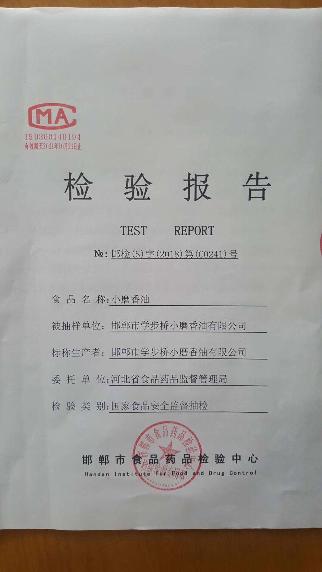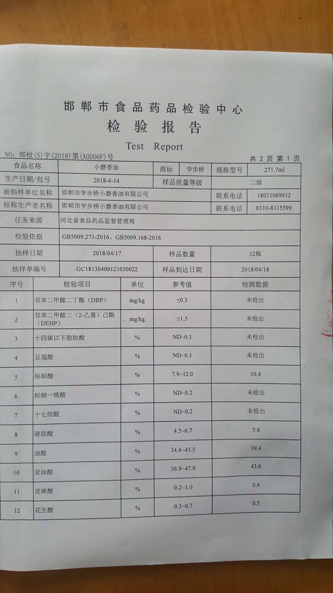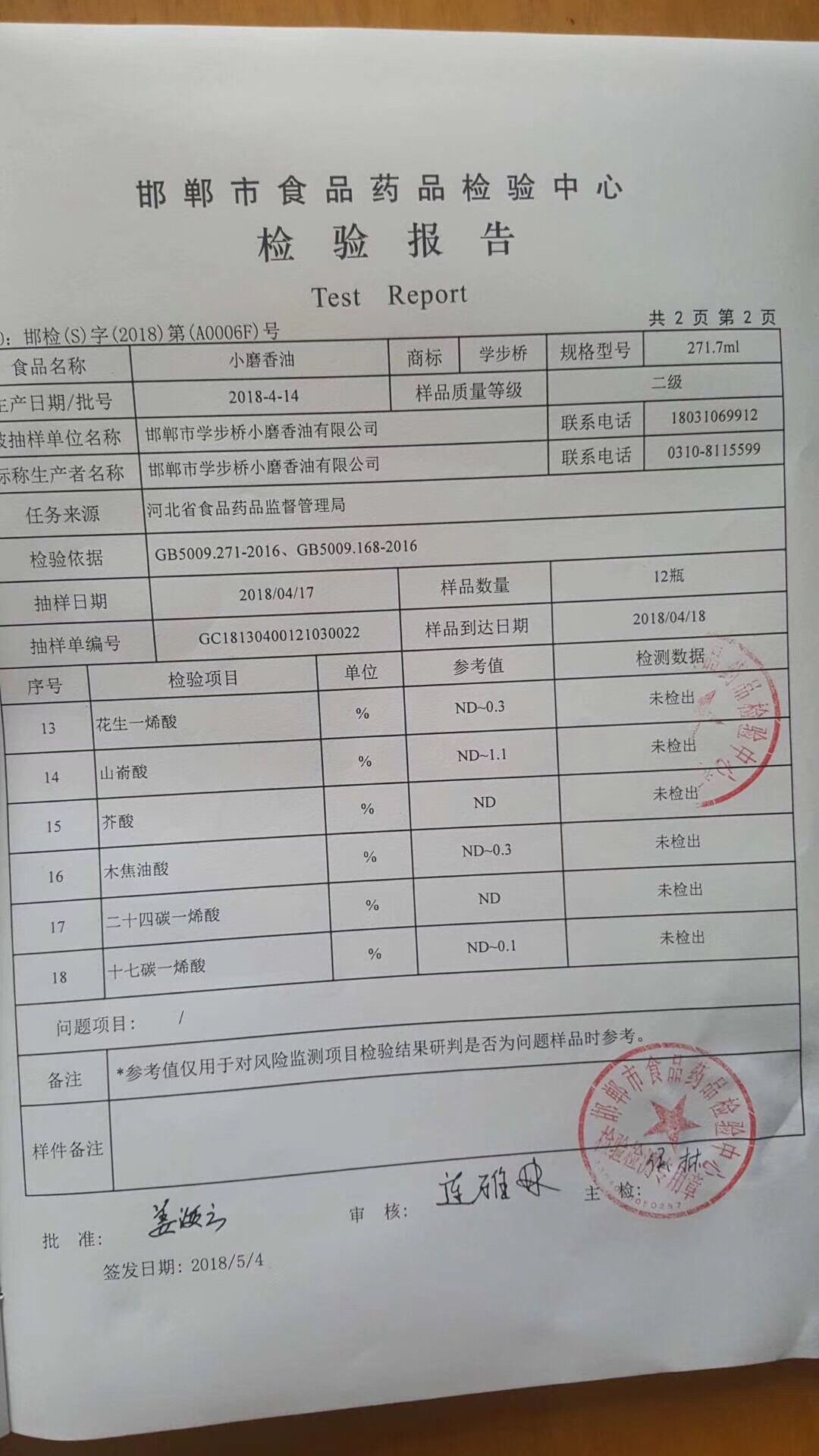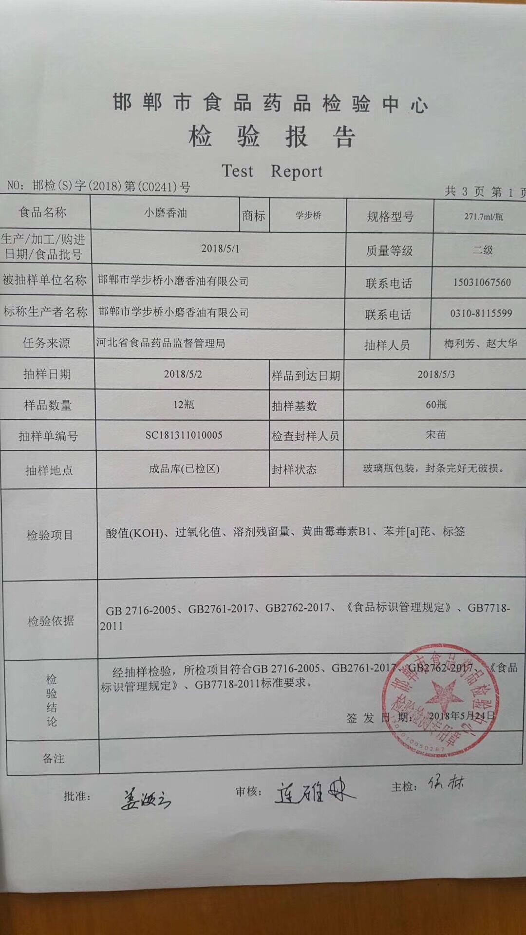 學(xué)步橋香油再次全部通過國(guó)家級(jí)抽檢