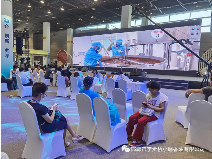 展區(qū)內(nèi)人群攢動(dòng)、熱鬧非凡,休息處大屏幕播放我司宣傳片,讓來館參觀人員充分了解了學(xué)步橋小磨香油的制作流程、制作工藝、制作細(xì)節(jié)以及我司的綜合實(shí)力。